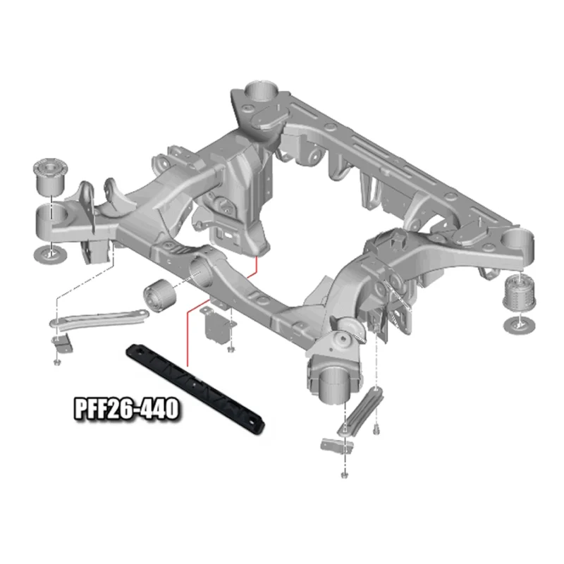 - Prevents rear subframe spread and maintains precise alignment