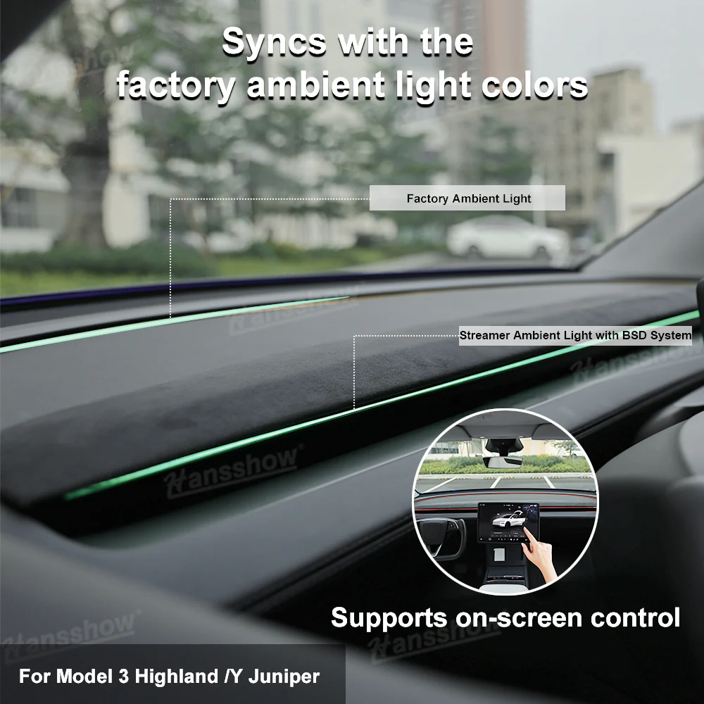 - Syncs with the factory ambient light colors & Supports on-screen control (Model 3 Highland / Y Juniper)